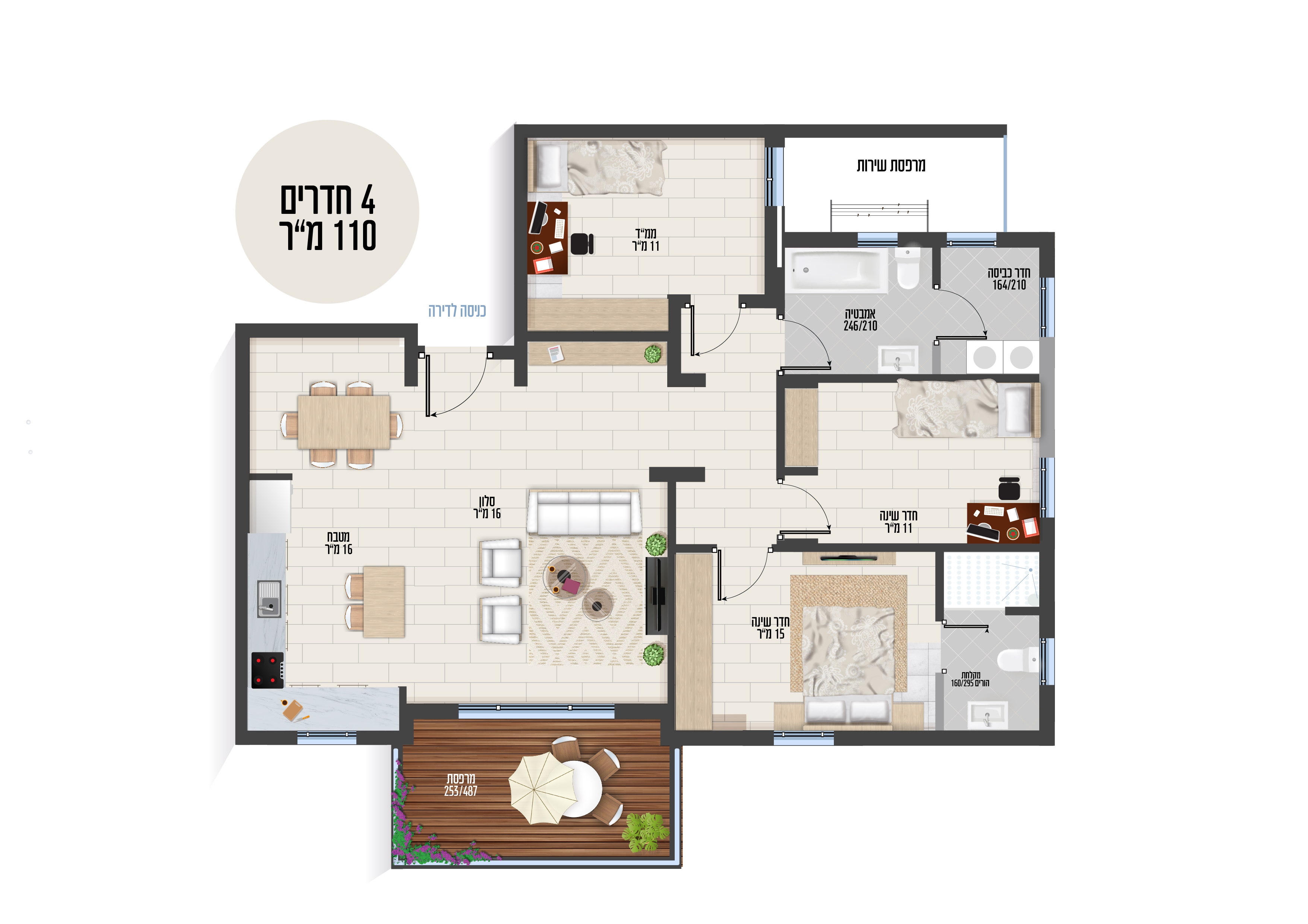 תושבי השכונה וילדיהם ייהנו מבני חינוך חדשים וחדשניים וממבני ציבור ותרבות יוקרתיים ומזמינים אזור התעשייה הקיים, שיורחב ב- 300 דונמים נוספים, יספק מגוון רחב של אפשרויות תעסוקה אטרקטיביות. אזור תעשייה ומסחר נוסף לגן יבנה מתוכנן בהמשך.